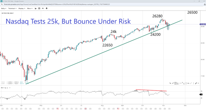 Nasdaq Bounces at 25k, But Can It Hold?