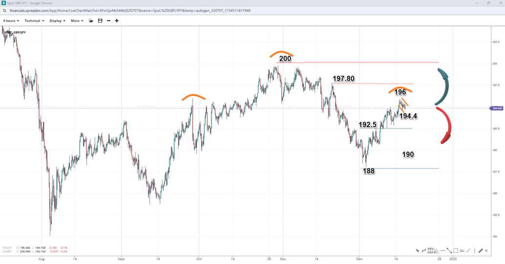 As central banks move towards easing, carry traders might find refuge with the pound, as the BOE is expected to be the slowest of the major central banks to normalise rates. This means it might be up to the BOJ to close the interest rate gap between the currencies. But that might be hampered because the . After the latest UK data, it could come down to the vote split at the BOE meeting to determine whether carry traders manage a sigh of relief and the currency pair heads towards 200 or forms another peak and starts trending downward.