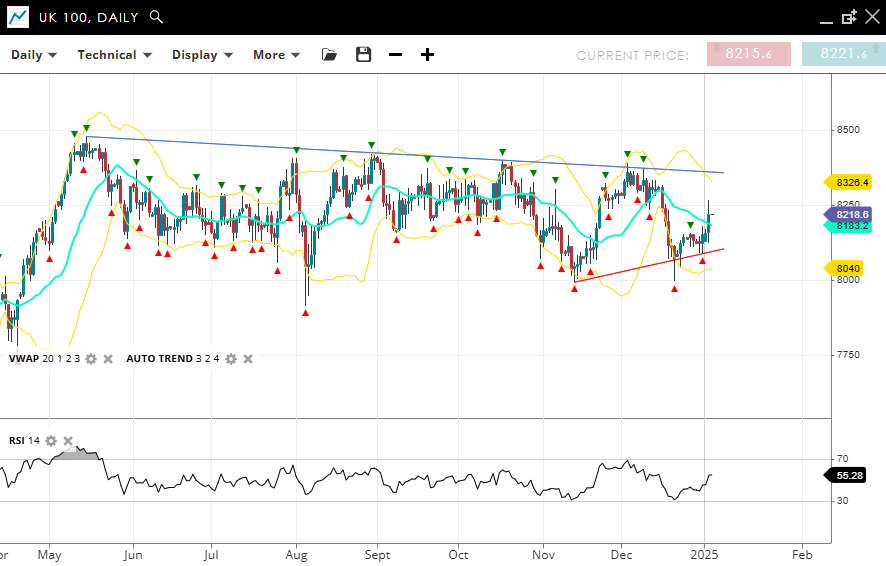 | UK 100 | Neutral | Consolidation | 8218 | 8183 | 8040 | 8326 | 55 |
