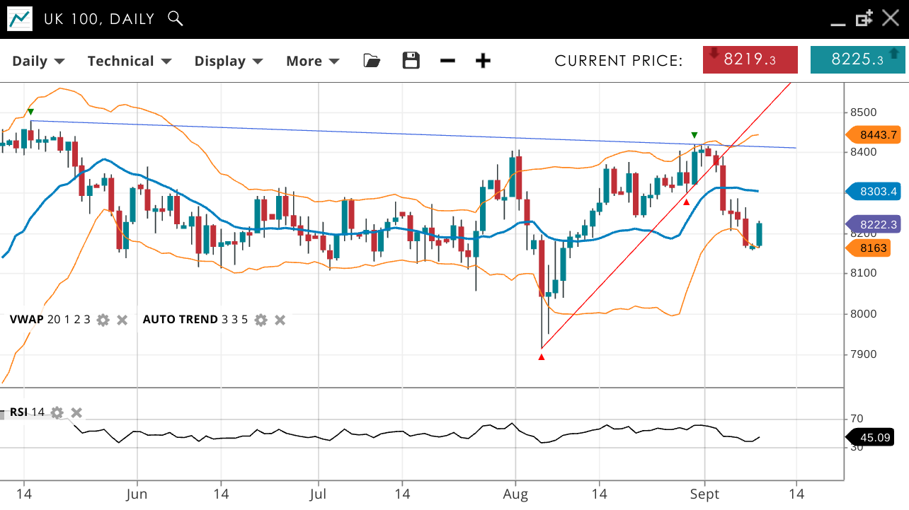 | UK 100 | Neutral | Consolidation | 8222 | 8303 | 8163 | 8443 | 45 |