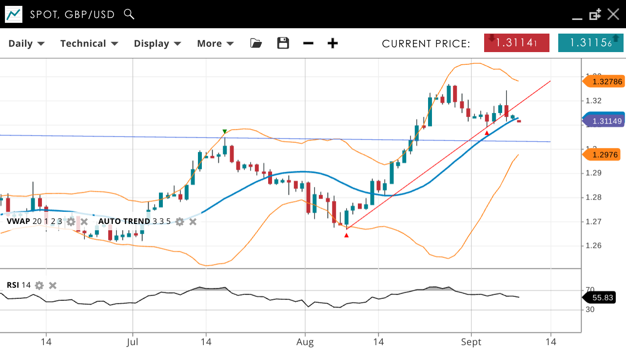 NOTE: These charts use the ‘Pro Trading Tools’ available on the SpreadEx trading platform. To use them, log in to your and click ‘Technical’ from the menu on any chart.