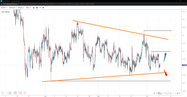 The pound has consolidated against the Swiss franc for a while now, but the narrowing of price action points to an imminent triangle breakout. Losing 1.1055 could accelerate declines, paving the way to 1.10, whereas a rise past 1.1150 may send prices as high as 1.1215 without invalidation.