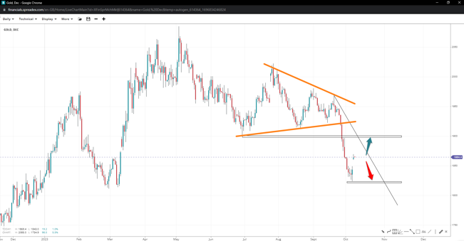 Failing to move past $1900 might instigate further pressure on gold, pointing to the measured-move low of $1780 an ounce in the medium. $1820 and the round support of $1800 would have to give way to bears, with chances past the barrier above opening the door to $1920/oz.