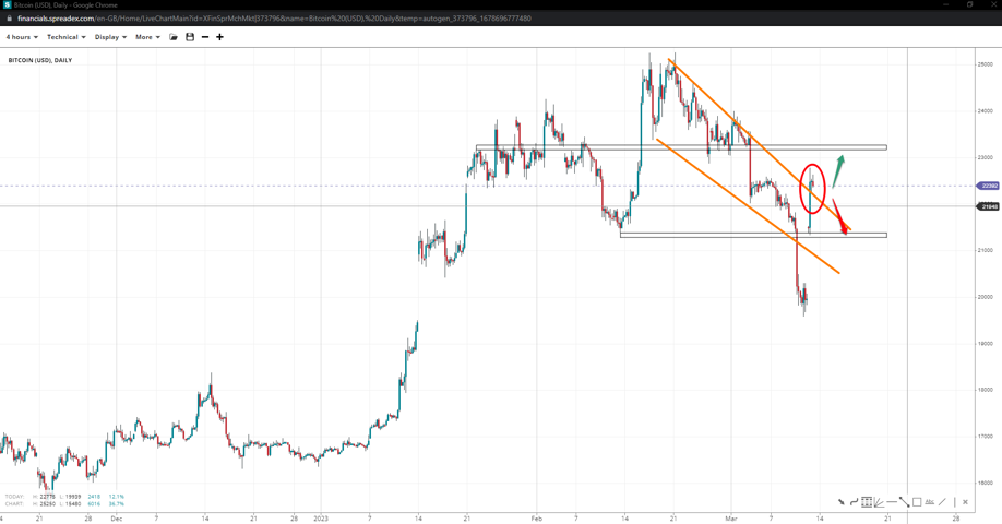 Bitcoin bounced at the 20k handle for what appears to be the end of the correction. If the move continues, prices might rise to 24k, provided 23200 gives in to upward pressure. Momentum could slow down, however, with 21340 back in the spotlight.