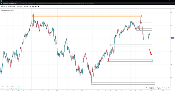 The Netherlands 25 index has topped at 742, forming a double top. The rejection has enough momentum to presume a double bottom might be at play, leaving a range bottom at or near 610. 685 and 655 are critical support levels bears must overtake for such an event, with a revisit of 715 following a bounce at the 700 handle offering some respite towards 735 and a potential head-and-shoulders formation.