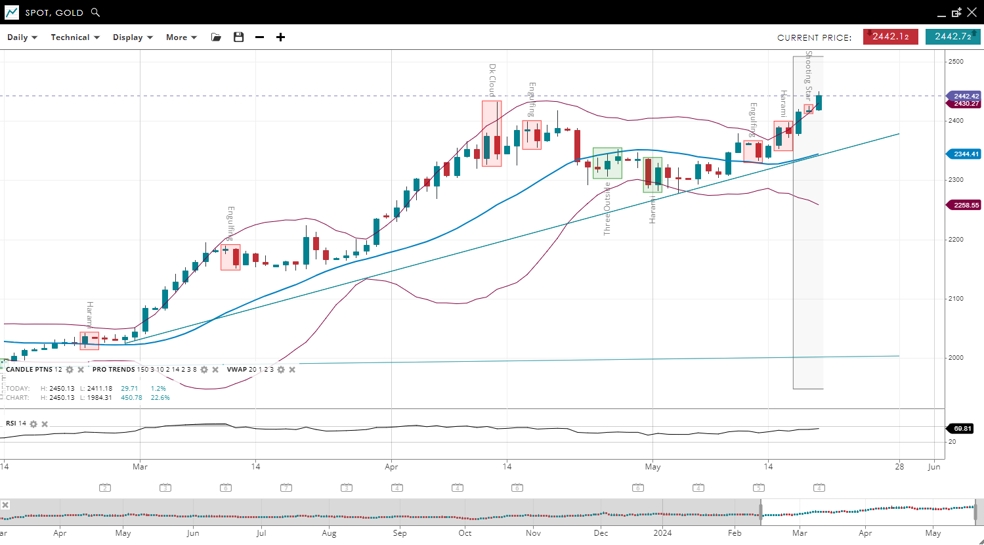 | Gold | Bullish | Impulsive | 2,442 | 2,344 | 2,258 | 2,430 | 69 |