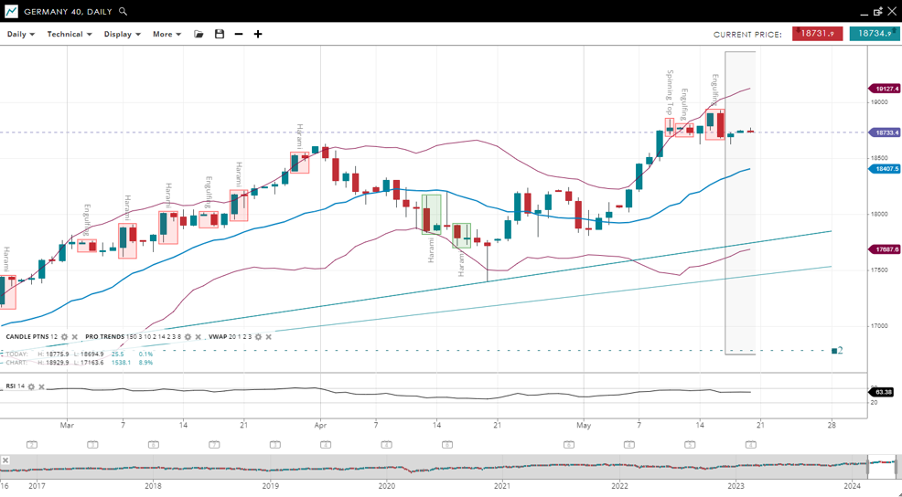 | Germany 40 | Bullish | Impulsive | 18,733 | 18,407 | 17,687 | 19,127 | 63 |