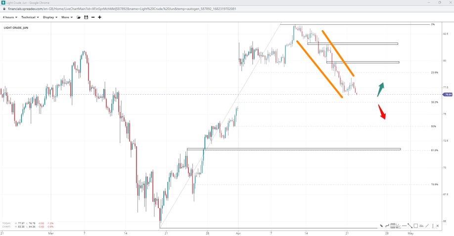 Crude oil declined below the $80.00 handle and continued to trade towards the middle of the latest uptrend, near $73.85, in what seems to be a flag pattern. If bears maintain control, we could see the index testing $71.65. Conversely, a potential rally above 81.65 may shift the current trend.