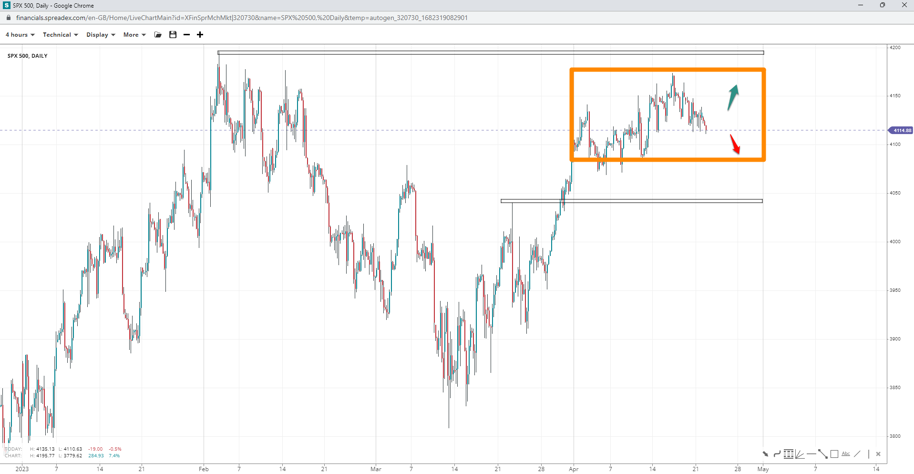 The S&P 500 index maintains a bullish bias as it appears to be consolidating in an uptrend. Caution should be exercised near 4080 and 4175. In case of a deeper pullback, 4040 should be watched closely, whereas a break higher will expose 4200.
