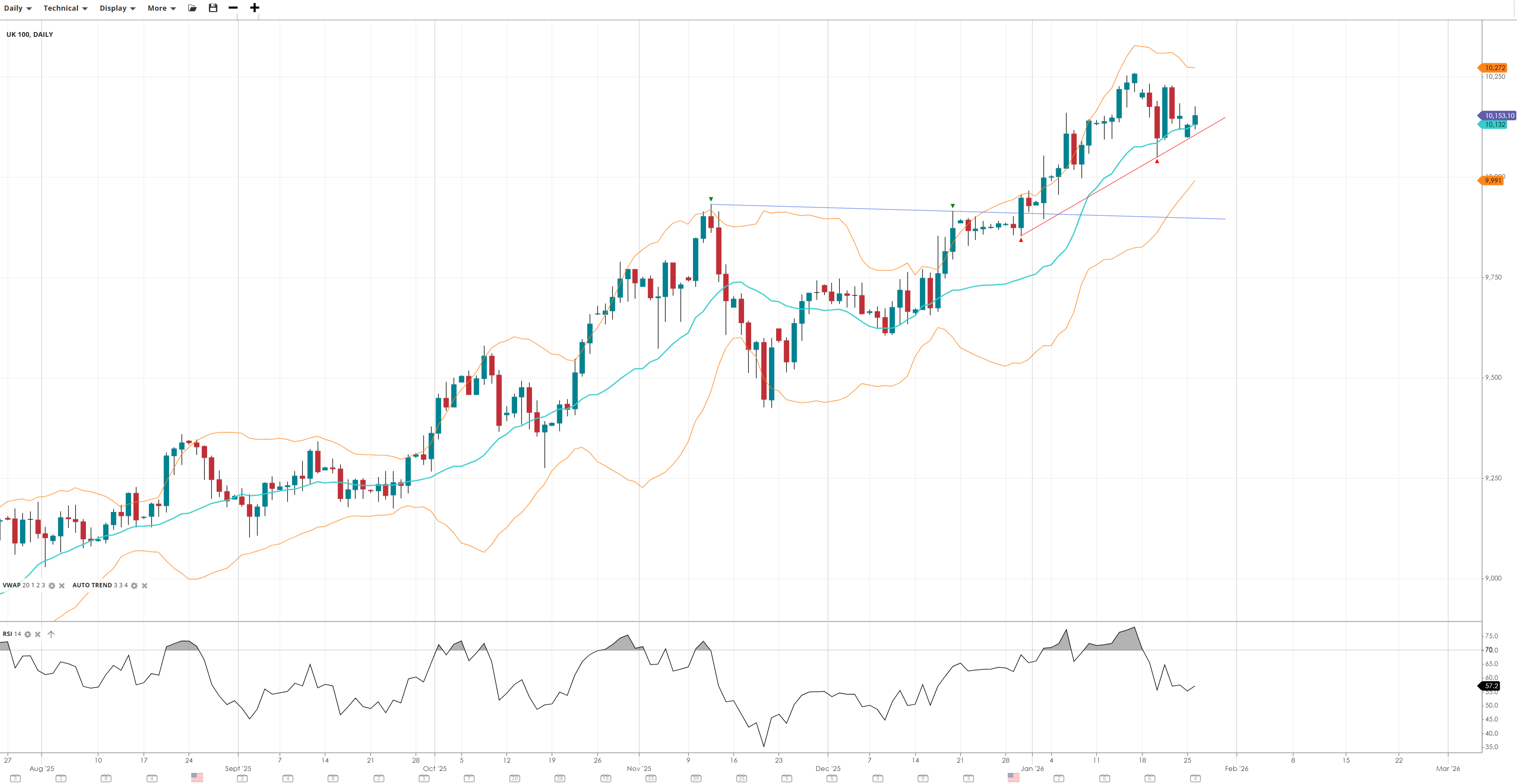 NOTE: These charts use the ‘Pro Trading Tools’ available on the SpreadEx trading platform. To use them, log in to your and click ‘Technical’ from the menu on any chart.