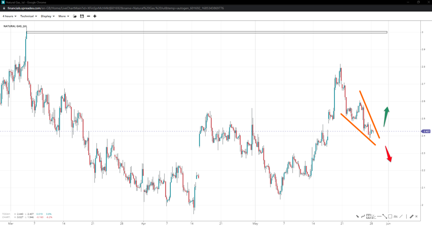 Natural gas witnessed a steep drop within the $2-$2.55 range, focusing on whether the downside leg forms a falling wedge near $2.20/cf. Bulls are expected to aim to reclaim $2.60, which might lead to $2.80 if achieved. Conversely, setbacks might trigger further declines, which could eliminate $2.30/cf but unlikely $2.15/cf.